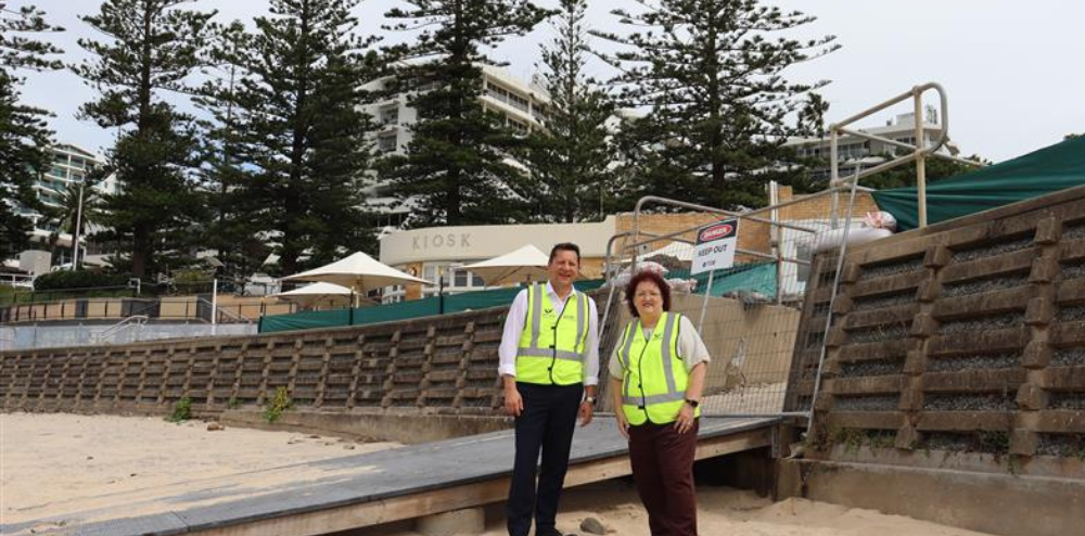 Once complete, the new seawall will connect to the existing Emma McKeon Promenade and provide stepped access and an accessible ramp onto the popular beach while also offering robust protection to the foreshore area.
