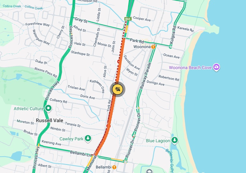 The accident is on Memorial Drive between Park Road and Bellambi Lane, and latest info is it’s affecting traffic in both directions.